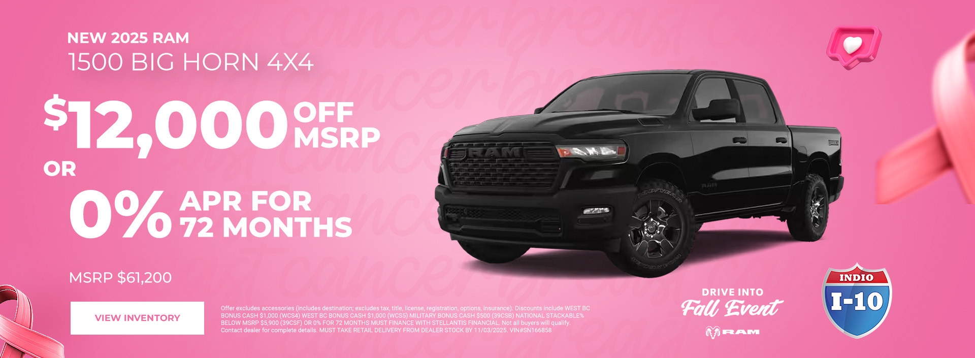 Are you on a budget? Or first time buyer or looking for cars, trucks and SUVs for sale? Is your credit challenged? Have you recently filed for bankruptcy? Are you afraid you might not qualify for an auto loan? You don’t have to worry at I-10 Chrysler Dodge Jeep Ram. Our finance center will get you the car loan or lease that fits your budget. We want to help you drive home in a new Chrysler, Dodge, Jeep, or Ram car, truck, or SUV near Thermal, Mecca, Oasis, Coachella, Indio, La Quinta, or Yucca Valley?